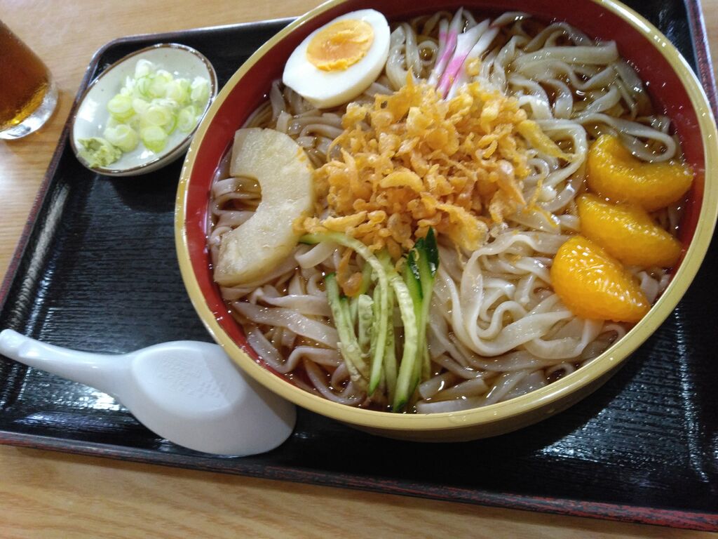 初来店、出雲支店さんに行ってきました。なんてリーズナブルな!物価高騰のなか、嬉しいお値段。暑かったので冷たいたぬきうどんにしました。昔懐かしい感じのする缶詰パインと缶詰ミカンが…。そして揚げ玉もいかにもって感じのもので、ザ・たぬきうどんという感じがしました。セットもお得で、お腹も満足。お店の前の通りがちょっと狭いので気を付けてお訪ね下さい! (訪問:2025/08/24)