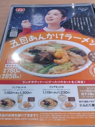 トライアルの買い物帰りに訪問。注文は12〜1月限定メニューの五目あんかけラーメンと餃子です。五目あんかけラーメンは野菜たっぷり、餡かけの上品なスープが麺に絡みとっても美味しかったです。餃子は定番の美味しさですね。大きさもあり、ジューシーでいつ食べても美味しい味です餃子は2皿(奥様とシェア)注文しましたが、アプリの餃子1皿無料のサービス券でお得に食事が出来ました。 (訪問:2025/12/02)