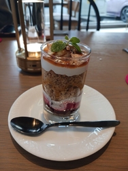初めての訪問です。とても落ち着いた雰囲気のお店でゆっくり過ごせました。念の為予約をして訪問しました。パスタセットから明太子のクリームパスタを注文です。スープはかぼちゃのスープです。甘みがあり温かいスープは食前に良いですね。サラダは彩りも綺麗で食欲をそそりました。メインのパスタを撮り忘れる程、急いで食べてしまいました。明太子が濃厚で美味しかったです。シャインマスカットのデザートを追加してお腹いっぱいになりました。ドリンクは酵素ジュースのアイスティー割が美味しかったです。おすすめのお店です。 (訪問:2025/11/05)