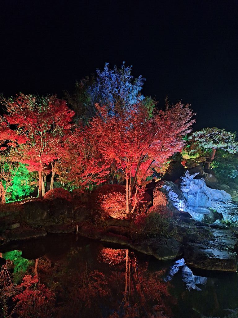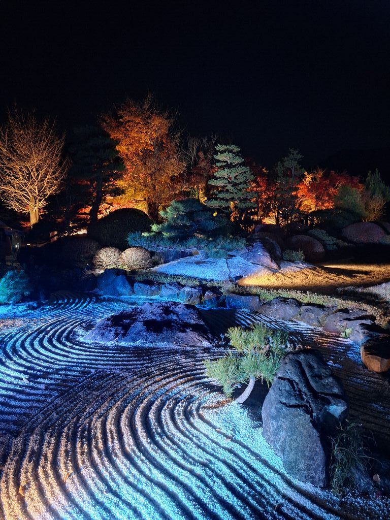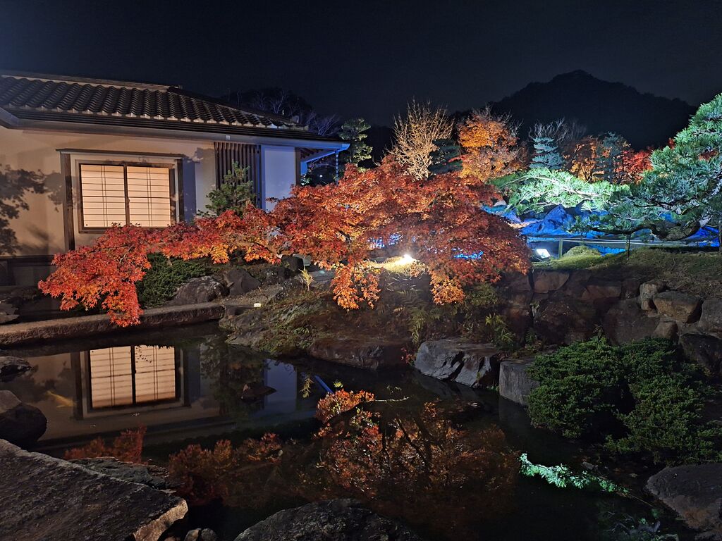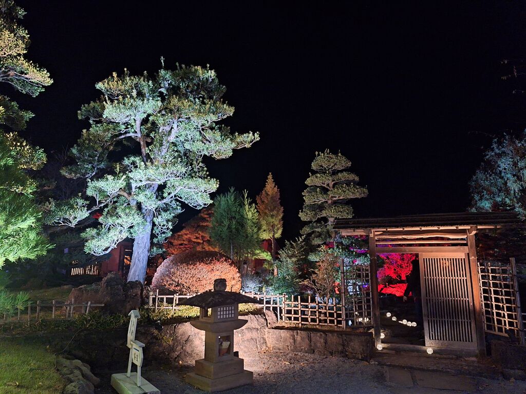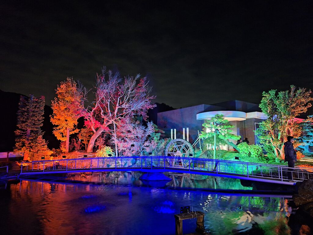 【さのあかり】のイベントで初めて訪れました。何度も目の前の道を通っており、皆さんの口コミでも気になっていたこちらの美術館。イベントだからか、正面入口からではなく裏手側からの入場。足元が少し悪く明かりがないので歩きにくかったのですが、塀の上から見え隠れする紅葉した木々やライトアップにテンション上がります。戸を潜るともうそこは圧巻の紅葉と光の世界‼まさに紅葉のピークであったこの日、銀杏の黄色に紅葉の紅が所畝ましとお出迎えしてくれます。階段を上ると紅葉に包まれた世界から、素敵な庭園を望むことが出来、幻想的な世界に迷い混んだかのようでした。様々な演出があり、どこを見ても素敵という感想ばかり☆素敵なイベントに出会えて感謝です^^来年も開催してくださったら嬉しいなぁ。是非とも昼間の庭園や、作品も見に伺ってみたくなりました。 (訪問:2025/11/16)