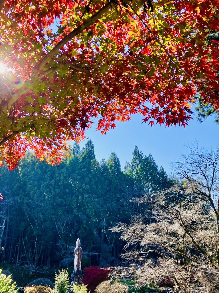 メンバーさんのクチコミで、知ることが出来た寺院。3日ほど前に、色づき始めたとの情報だったので、伺ってみても、やっぱり、まだ早かったですね◉_◉ それでも、所々、見頃を迎えたモミジがあり、綺麗でした(⋈◍>◡<◍)。✧♡ 住職が、本堂のなかも拝見していいですよ!!!と、おっしゃってくださったので、拝見に伺うと、若住職さんが、説明や解説までしてくださり、感激でしたo(*////▽////*)q 「人天蓋」(にんてんがい)と呼ばれる、ゴールドのゴージャスな仏具がとても美しく、下から見上げると、天空の様子が描かれていて、息を呑みましたщ(ʘ╻ʘ)щ 鐘も撞いていってください!!!とのことで、撞かせていただきました°˖✧◝(⁰▿⁰)◜✧˖° 不動明王や、仁王像も、凛々しい姿で迎えてくれます(((o(*゜▽゜*)o))) これから紅葉も進むと、もっと絶景が見られるでしょう(●ˇ∀ˇ●) みなさんにも、感動を味わっていただきたいデス(o゜▽゜)o☆ (訪問:2024/11/21)