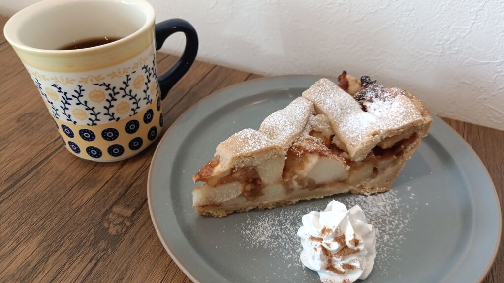 ちょっと迷ってしまったけど、かわいらしい看板を見付け「ここだぁ~」と発見し無事に到着~٩( ᐛ )و【アップルパイ】と【エチオピア ナチュラル 浅煎り】を注文~♪ゴロッと大きなりんごが入ったアップルパイに感動しちゃいました~(ૢ˃ꌂ˂⁎)食感はしっとりしていて素材のりんごの酸味と甘みを生かした味でさっぱりとした重くないアップルパイ!って感じで大人な味~♪添えてある生クリームも甘ったるくなくて相性抜群!コーヒーは上品な酸味があって柑橘系の香り&甘みがあって、あっさりした口当たりで冷めると甘みが強調された感じに思えました(笑)居心地良くて長居してしまいましたぁ~ꉂꉂ(ᵔᗜᵔ*) (訪問:2026/01/29)