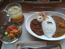 | 合盛りカレーセット(エビ+チキン) (サラダ、ドリンク、自家製アイスクリーム付き) |