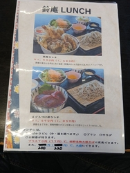 | 【ランチ】天丼ランチ(海老・いか・野菜) 当店の人気メニュー!揚げたての天ぷらに鈴庵特製のかえしを使った甘じょっぱいたれは美味です |