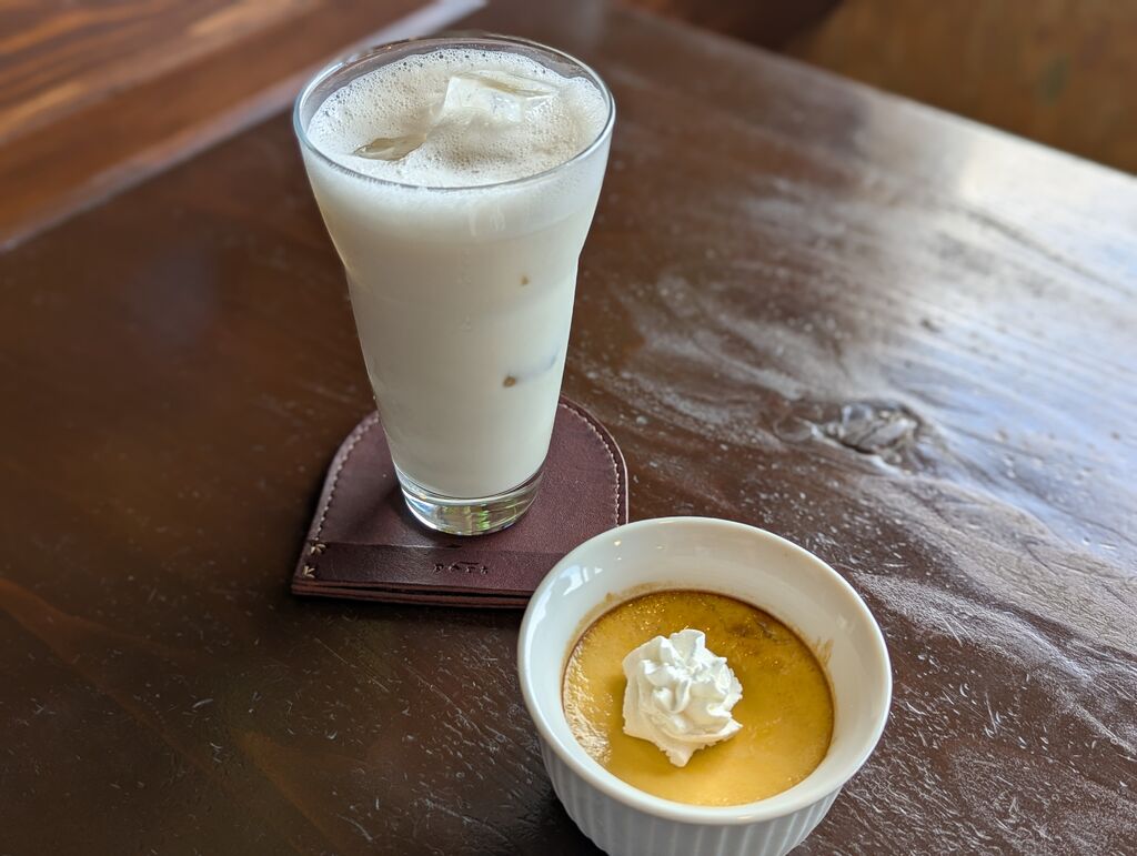 食後のデザートを求めてお邪魔しました~♫アイスオレとかぼちゃのプリンを注文♫アイスオレは、アイスコーヒーとオーツミルクの組み合わせで まろやかで凄く飲みやすくかったです。どちらかと言うとオーツミルクの味の方が強い感じなので、甘党の私には好みの味でした。かぼちゃのプリンは手作り感をしっかり味わえる濃厚なプリンでした。食感もしっかりしていて癖になる味わいで、量的に物足りなさを感じてしまった位でした(笑)今度はランチでお邪魔してみたいです。 (訪問:2025/08/28)