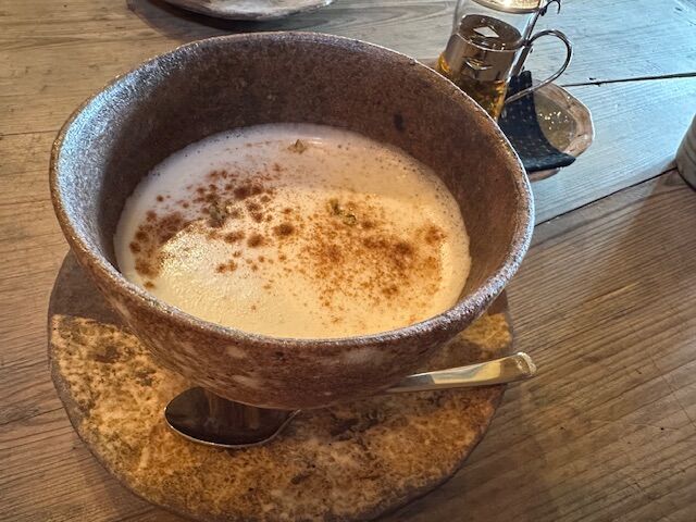インスタで気になっていたお店に伺いました。お店に着くまでの道が細いとインスタで知ってはいましたが…ドキドキして進みました。着くと、素敵な建物が⭐︎店内はカウンター席にテーブル席、ソファ席と結構広々。好きな席に座らせて頂きました。【カモミールシナモンラテ】【そば粉パン】【そば粉鯛焼き】を注文。ラテは甘さを自分ではちみつを入れて調整するので、徐々に甘さを足して飲み進めました。器やお皿は全てご主人が焼いたものとの事で、どれも味があって素敵でした!パンはサワークリームをつけて。しっとりしていて美味しかったです。衝撃だったのは鯛焼き‼︎羽部分がパリッとしていて香ばしく、あんこは粒がしっかりで程よい甘さが最高!コレが食べたくてまた伺うなと思いながらペロリと完食でした。帰りに【山椒ホワイト】のクッキーを買いました。山椒が思ってた以上に香ってパンチがありました。どれも丁寧に作られているのがわかり、またゆっくり伺いたいなと思います。ご馳走様でした。 (訪問:2026/02/14)