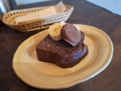 先月お邪魔してすっかり虜になってしまったテレンコさん。どうしても再訪したくて14時半頃お邪魔しました。平日のため混雑なく、気になっていた隅っこの席へ。烏龍茶も美味しいけど、今日は中国茶紅茶の気分、解説で気になった『桃映紅茶850円』に、『チョコバナナケーキ400円』をチョイス。解説通りスパイシーな香りに爽やかな後味の紅茶。辛いわけではなく、良い香りの余韻に浸れ、イギリス紅茶とは異なる味わいにすっかり魅了され、煎も効くことからながーくたっぷり楽しませていただきました☆グルテンフリーなこちらのお店、チョコバナナケーキも例外ではなく、しっかりそば粉のお味を楽しめつつ、ちゃんとチョコバナナの美味しさが満喫出来るウマウマなケーキにゾッコン♪クリームかと思いきや、ヨーグルトのようなほんのり酸味のある爽やかなクリームが添えられ、そちらも絶品でした‼お会計時に、以前より気になっていた『山椒ホワイト(ミニサイズ)100円』のクッキーを発見!ミニサイズで可愛い。テイクアウトし、帰宅後いただきましたが、山椒の痺れとホワイトチョコの甘さがマッチした大人のクッキーに新たな扉を開いた気分^^今回も居心地良く、大満足な滞在。店主さんも覚えててくださり嬉しい限り。是非是非通いたい素敵なお店様です。 (訪問:2026/03/09)
