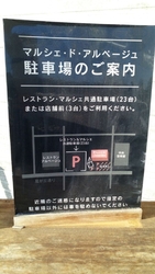 駐車場はこちら!! 駐車場はレストラン&マルシェ共有駐車場(23台)もしくは、店舗前(3台)をご利用くださいませ!近隣のご迷惑になりますので、指定の駐車場以外にはお車を駐車しないようお願いいたします。