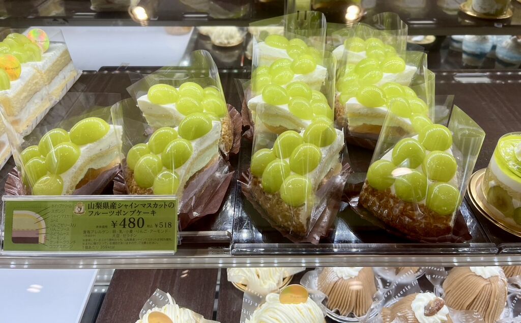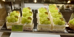 チラシで見たシャインマスカットフェアということで、ケーキを購入しに来店。色鮮やかなシャインマスカットのケーキが、ショーケースを彩ります。あれもこれも食べたくて悩んでいましたが、主人の一言で《旬のフルーツバトン 山梨県産シャインマスカット》にしました。トッピングされてるたくさんのシャインマスカットは、とても甘くてジューシーでした♪スポンジもしっとりとしていて、甘酸っぱい苺クリームとホイップクリームのバランスが絶妙。結局、その日に主人と食べきってしまいました。あとから知ったのですが、こちらのケーキは、ケーキマイスターがお店で仕上げる限定のケーキだそうです。貴重なケーキが食べられてよかったです♪ (訪問:2025/09/20)