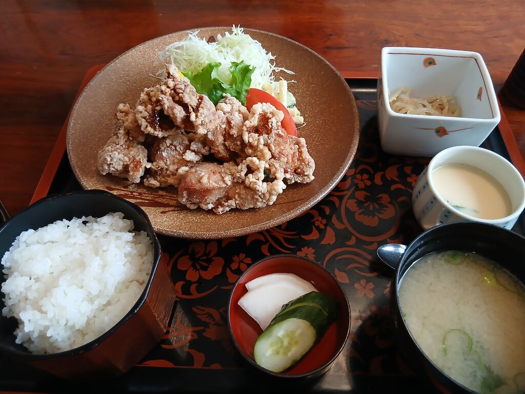今日は、3連休の中日の日曜日です。お墓参りをした後、11時過ぎに食べに来ました。今回は、からあげ定食を、食べて来ました。からあげが、アツアツでやわらかくて、思った以上に量があり、とてもうまかったです。また、茶碗蒸し、小鉢もあり、腹いっぱいになりました。ごちそうさまでした。 (訪問:2025/10/12)