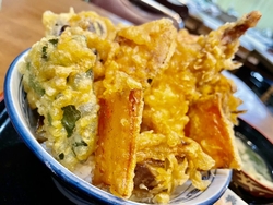 ガツンとご飯を食べたい時にここに来ます。デカ盛りの聖地、ドライブインのざき食堂です。今日は天丼。大きな海老天2本を中心に、野菜の天ぷらが周りを囲みます。カリッとした衣で良い食感。甘目の天汁が汁だくてご飯に染みてます。デカ盛りの代名詞ですね。トラックドライバー向けの店の作りでシャワー室等も有りますが、家族連れ、サラリーマン、女性もいらっしゃって普通の街の食堂となってます。食後に良いタイミングでコーヒーを出してくれるのも嬉しいですね^_^ (訪問:2026/02/18)