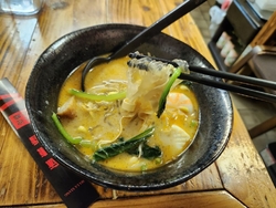 雑居ビルの奥まった所にお店への入り口があり、少し勇気を振り絞ってドアをくぐるとそこは、期待値マックスの現地感溢れる中国語が飛び交う世界。お客さんは中国の方が多く、本場の味が本格的に楽しめるのか!と感じずにはいられません。メインの鍋もおつまみ系も期待以上の美味しさで、これはリピートするな〜、と食べてる最中に決めてしまう程。店員さんには日本語で注文して、きっちり対応してくれるので、そこもひと安心。宇都宮で中国の風を感じたい方は是非! (訪問:2024/02/09)