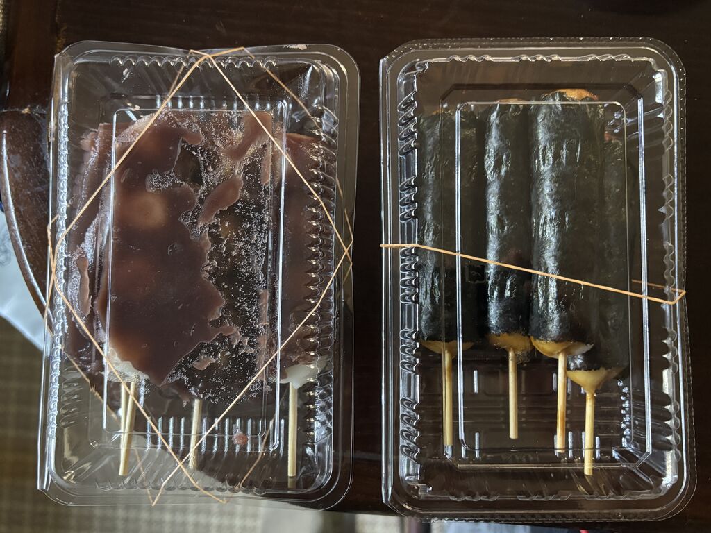 7~8種類のだんご、大福や饅頭も大好評★海苔巻きや稲荷、おこわもどうぞ