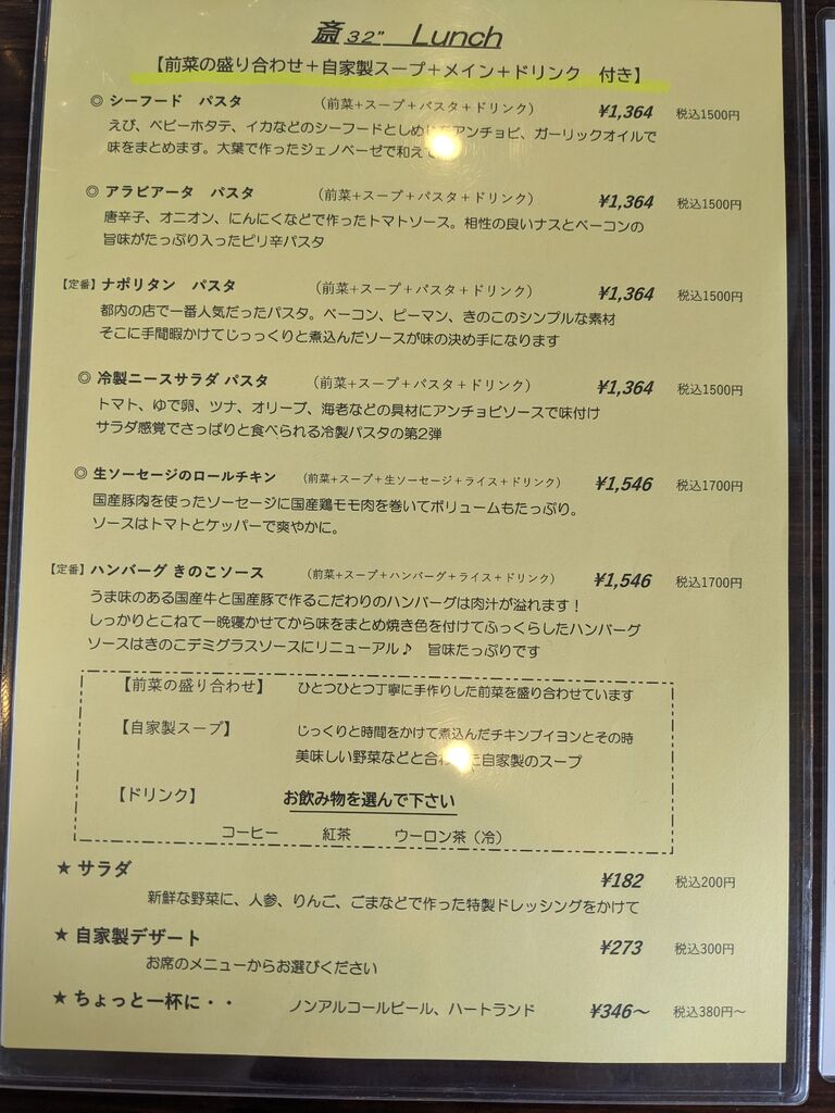 ◇パスタ ※前菜の盛合せ、自家製スープ、ドリンク付き |