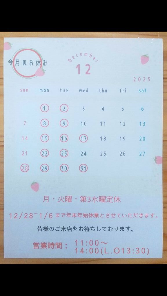 通常 11:00~14:00 17:00~21:00 ※夜営業は予約制となります |