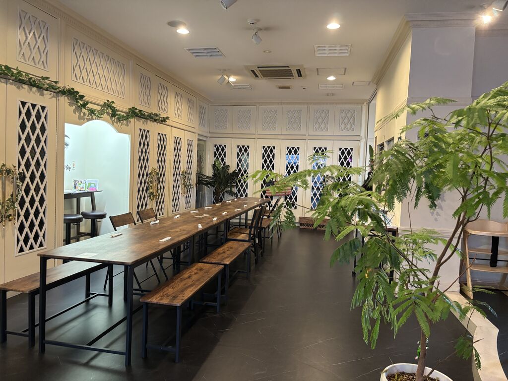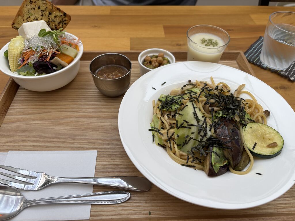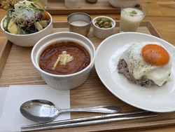 しばらく前から気になっていましたが、ランチに行ってきました。入り口を入るとエレベーターがあり、2階がカフェになっていました。思ったより広い店内には、大きなテーブルやキッズスペースの個室、手作り雑貨コーナーなとがあり、私達はテラス席に案内されました。 夫はパスタランチ、私はキーマカレーランチ(白米を雑穀米に変更)にしましたが、どちらも具沢山で大満足!しかも、サラダとドリンクとミニパフェが付いて1500円という安さにびっくりでした。店員さんの接客も丁寧で、ぜひまた来たくなるカフェでした。 (訪問:2025/10/12)