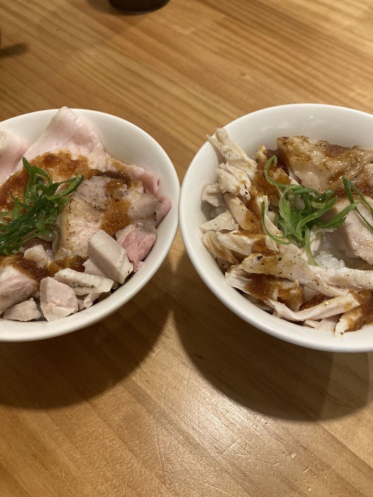 美味しいから行ってみて!とお薦めされ、気になっていた九道さんに夜訪問しました。昼はいつも並んでるので夜にしたのですが、それでもたくさん人がいて人気なお店ですね。塩を薦められていたので、淡麗の塩と白湯の鶏そば、鶏淡麗つけそば並盛、鶏と豚チャーシュー丼各種注文。つけそばの麺が細麺で嬉しい!さらに美味しい冷たい出汁に浸かっていて、それを程よく濃い目の塩鶏スープに付けて食べるとすっごく美味しい^_^柚子が良い力を発揮してます。お肉が豚も鶏もしっとり柔らかで、鶏胸肉は特に胸さを感じない素敵なお肉です。炙られていて香ばしさも。ラーメンもそれぞれ鶏だしが効いて本当に美味しかった〜。ご飯にそんなしっとり柔らかなお肉と、香ばしいお肉がステーキソースがまとっていて米が進みます。ラーメンスープと合わせたり楽しめました。混む理由が良くわかります。また伺います! (訪問:2025/10/04)