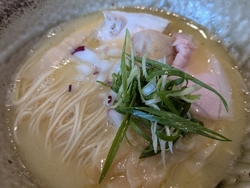 鶏白湯を食べたくて伺いました。【鶏そば】は3種のチャーシューは丁寧な作りで違う味と食感を楽しめます。濃厚なスープが細麺に絡みつき麺とスープが一体となって口の中に入ってきます。また、替え玉の他に和え麺もあり、煮干し系が好きな私は【煮干しの和え麺】も注文。半分はスープに入れて食し、もう半分は魚粉と麺をしっかりと混ぜて煮干しをダイレクトに楽しみました。ごちそうさまでした。 (訪問:2025/08/07)