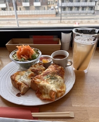 カウンター席に座り目の前を往来するLRTを眺めながらafternoon (午後の食事セットで14:00からの提供)「クロックムッシュ」を頂いてきましたチーズたっぷりで美味しかったぁ(,,•﹏•,,)♡♡店内には柱サボテン!!!!つば九郎もいてライトがヤクルトの形!!食事以外でも楽しめました(๑•̀ㅂ•́)و✧ (訪問:2025/05/16)