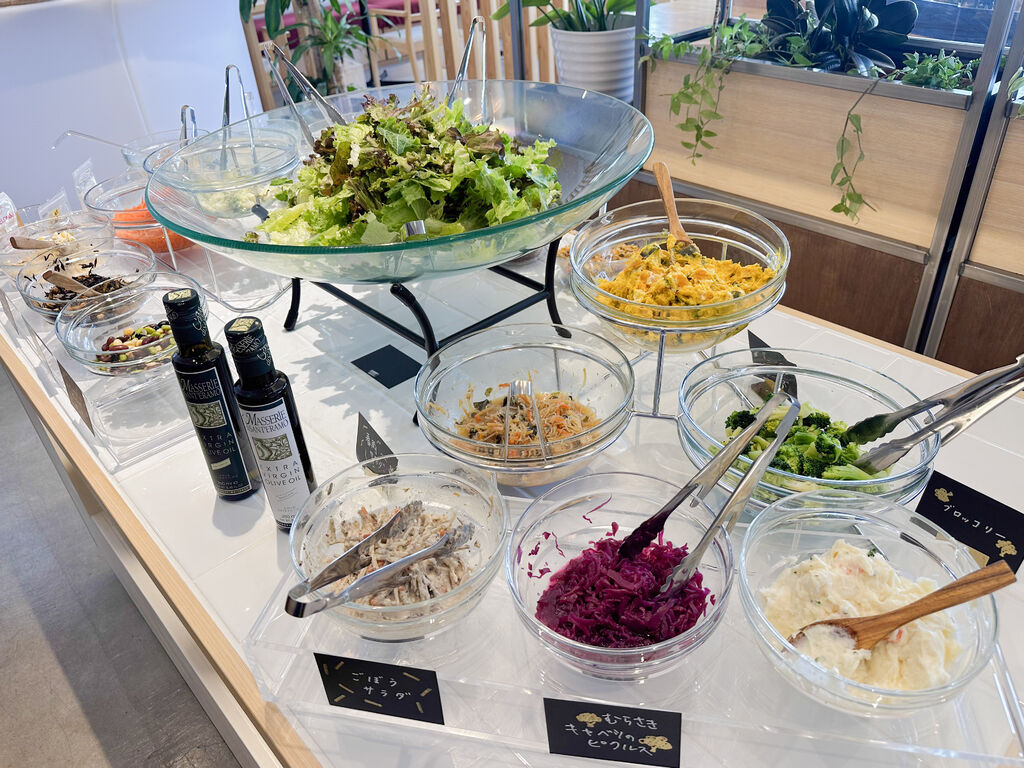 新鮮野菜たっぷり!ヘルシーサラダバー こだわりの新鮮野菜を使ったゆいの杜カフェ自慢のサラダバー☆彩り豊かに、健康的で満足感のあるランチをお楽しみいただけますよ!