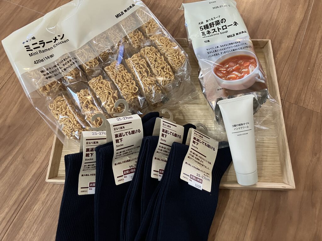 無印良品週間のお得な期間に買い物してきました。裏表どっちでもはける黒のソックス、なんて素敵な商品なんでしょう!だらしないウチの中学男子にピッタリです^ ^しかも¥300に値下げからの10%オフ。他にはシンプルだけどオシャレなお盆や柑橘系の癒される香りのハンドクリームなど実はこないだも無印で買い物したばかりなので必要な分だけささっと買い物。長くいると色々欲しくなっちゃいますよね。 (訪問:2025/10/31)