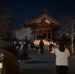 除夜の鐘がつけると聞いて大晦日の11時半頃にお邪魔しました。キャンドルナイトということで、キッチンカーも2台出店、お寺でキッチンカーwwキャンドルも美しく、癒されます。住職がお経を唱えた後に、順番に鐘をついていきます。いつもとは違う大晦日を過ごしました。よい年になりますように。ありがとうございました。 (訪問:2024/12/31)