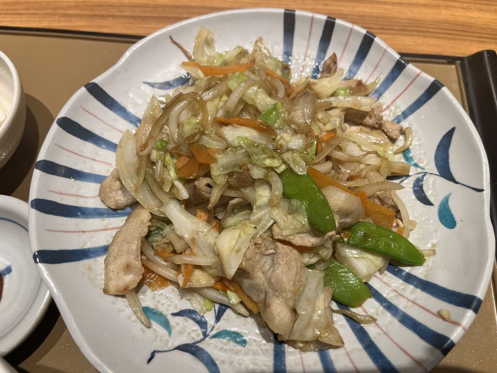 野菜不足だったので「肉野菜炒め定食950円」をいただきました。多種類の野菜が入っていて、味付けも濃すぎず美味しかったです。〆にお茶漬けもいただきました。卓上の漬物がお茶漬けによく合います。メニューが豊富で営業時間も長くありがたいです。また伺います。 (訪問:2025/10/15)