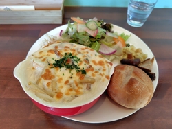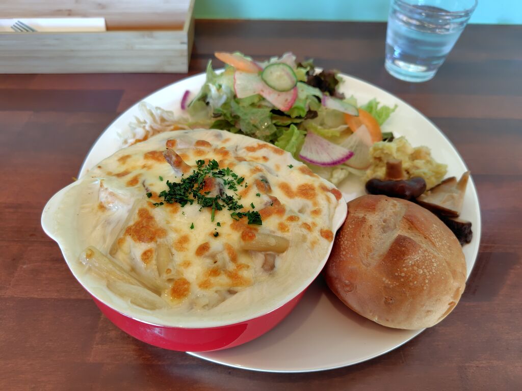 家から1km少し位の場所にできたカフェなのですが、なかなか行けなくて。やっと…年末の大掃除の合間にランチに行くことができました!旦那さんは、お店イチオシの【やしおポークのBBQプレート】私は【くるみパンプレート・エビグラタン】を注文しました。プラス¥100ドリンク付き(コーヒー・紅茶)、プラス¥400デザート・ドリンク付き(コーヒー・紅茶)にできます(^^)/旦那さんがデザート・ドリンク付きも注文〜。噂に聞いていた通り!スープもプレートもボリュームがすごくて…本当にびっくり!!野菜色々たくさんで、メインのモノもたっぷりです。美味しくて、満腹で…く、苦しぃ〜〜〜(^o^;)デザートはシェアして食べましたが、美味しかったです♪次回は…もっと!お腹をすかせて、友達と来たいと思います♡くるみパンやちょっとした野菜のテイクアウトもできるようです。ごちそうさまでした〜! (訪問:2025/12/30)