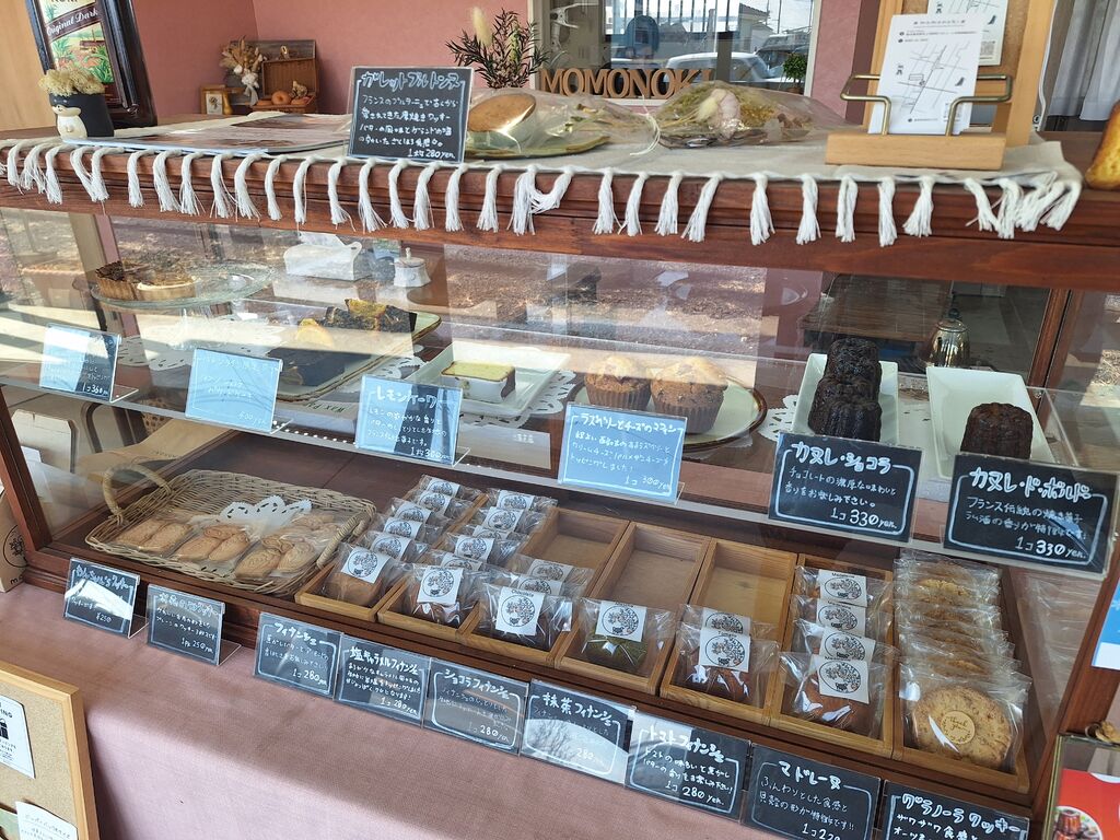 以前頂いたフィナンシェがとっても美味しくて、他のおやつも気になるので是非とも店舗にお邪魔したいと思い、思いきって仕事をサボりました。11時半頃の到着で思っている以上の焼き菓子の数々に圧倒され、全部食べたいけどそれは無理なので、イートインで『いちごパフェ800円』『セット紅茶350円』を、テイクアウトで『カヌレ(ショコラ/ボルドー)各330円』『フィナンシェ(ショコラ/塩キャラメル/トマト)各280円』『レモンケーク300円』『オレンジショコラ(バレンタイン限定)400円』をゲット。店内の席で待っていると素敵すぎるいちごパフェが登場。今だけお値段据え置きの苺2倍というなんとも嬉しいイベント真っ最中‼こんなにいちごが乗ってるだなんて、と、どこから手をつけて良いのやら。ジューシーで甘~い苺をこれでもかと食べられるパフェ、アイスにザクザク食感、底の苺とジュレと、様々な食感が楽しめますが、何よりも苺以外は甘さ控えめなのでさっぱりペロリ~☆なんとも贅沢なパフェに感動でした‼ドリンクは甘いものからコーヒー類まで様々。スイーツもドリンクも魅力的で次回の来店も悩んでしまいそう。テイクアウトしたお菓子、カヌレは帰宅後も外はカリっと中身はもっちり~でビックリ‼お味もプレーン/ショコラ共に美味しい^^フィナンシェから、トマト!?と他店では見たことの無いフレーバーを発見し気になりチョイス。甘じょっぱく、しっかりトマトだけどちゃんとフィナンシェでものすごーく美味しい♪前回こちらのフィナンシェを頂いて是非にと来店しましたが、来店して良かった‼ショコラも塩キャラメルも美味しくて幸せ。レモンケークもオレンジショコラもどちらも本当に美味しく、大満足。オレンジショコラはバレンタイン限定と言わず常時頂きたいくらいです。どれも美味しく、素敵なお菓子たちに出会えて幸せ~!是非是非また仕事サボってお邪魔したいです。看板わんこのマロンちゃんも、吠えること無く好きなだけ撫でても良いよ~と言わんばかりの大人しさ。美味しいお菓子と共にマロンちゃんにも癒されに伺います。 (訪問:2026/02/13)