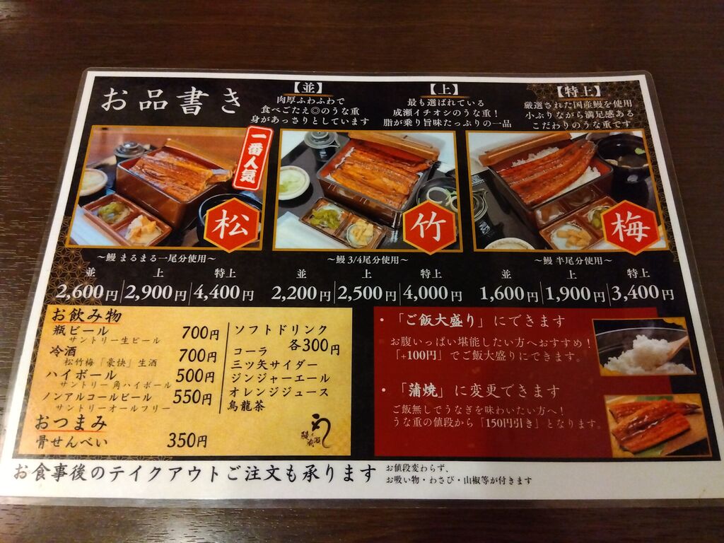 | うな重 竹 | 2,200円~ |
