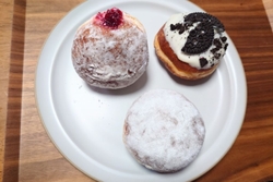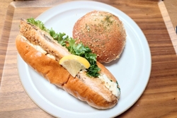 ランチの為、イートインを初めてしました!店内にイートインコーナーが有るのは良いですね!フィッシュバーガー、生ドーナツのデイプロマット「カスタードと生クリームの入ったもの」を、アメリカンコーヒーでイートイン!そしてドーナツのアビーロード、そのチョコレート、サーモンタルタル、自家製カレーパン、生ドーナツのラズベリーをテイクアウトしました!イートインのフィッシュバーガーは、ふわふわパンに、タルタルソースが美味しい!生ドーナツは、クリームたっぷり、きめ細かなしっとり生地が美味しかったです!テイクアウトのサーモンタルタルも大きめサーモンフライが美味しく、ドーナツはそれぞれ生地が美味しかったです!カレーパンは焼きカレーパンなので、さっぱり美味しく頂けました!店内はたくさんのパン、そしてケーキ、焼き菓子等でいっぱいです!ジェラードも販売されています!種類も豊富で、活気に満ちた西川田店さんです!美味しいパン、ドーナツごちそうさまでした!ありがとう御座いました! (訪問:2026/02/09)