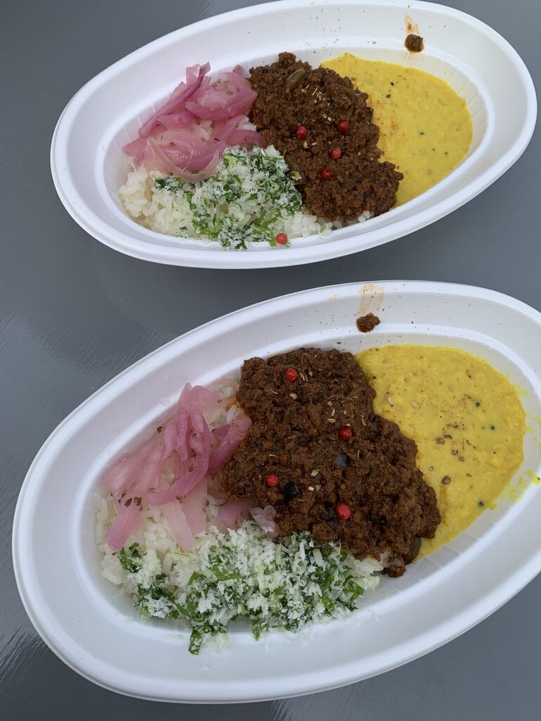 ずっと気になっていたRooさん、ユニオン通りのイベント028マーケットに出店されていたので目当てに行きました。合がけカレーをいただきました。黄色いのはお芋を使ったような子供でも食べられそうな味。茶色いのはスパイスが効いていて美味しかったです。今度お店にお邪魔したいです。 (訪問:2025/11/02)