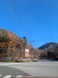龍王峡の遊歩道から、国道に上がり、龍王峡の駐車場まで戻る事にしました。流石に舗装路は歩くのが、楽でした。お陰さまで、新しくなった龍王橋を徒歩で渡る事が出来ました。なかなか、新しくなった龍王橋を徒歩で、渡れる機会は、無いでしょうね。この道に出るには、龍王峡の遊歩道から国道に上がる坂道を登る箇所が有り、他の観光客の方がそちら方面に坂道を上って行く方が多かったので、流石に山道を歩くのに疲れてしまい、国道に出るために上がりまして舗装路を歩いて戻る事にしました。街道沿いには、綺麗な紅葉が素晴らしかったです。 (訪問:2025/11/03)