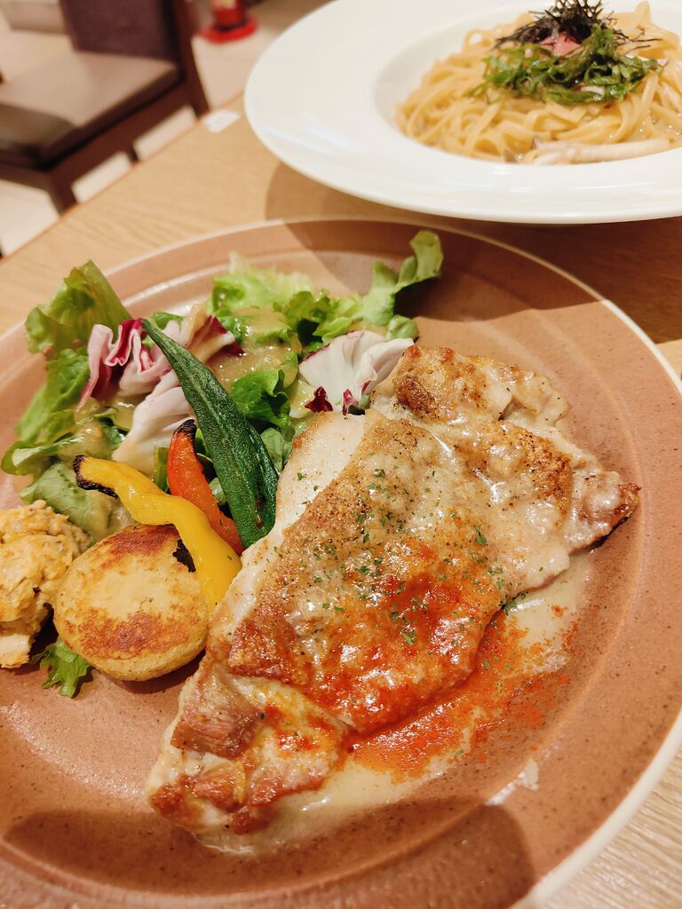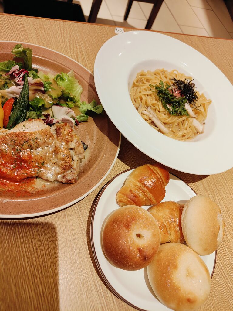 ランチに。フェアメニューのグリルチキンのゆず味噌クリーム煮とハンバーグと冬野菜のクリーム煮を!どちらも熱々でソースをパンにつけて食べると美味しかったです。誕生日クーポンでお得に頂きました☆ (訪問:2025/12/26)