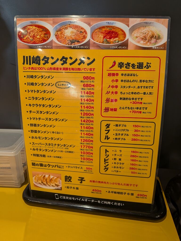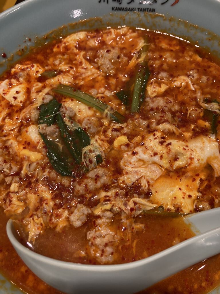 美味しいし癖になると聞いて伺いました。辛いのが苦手な子供には辛さ控えめで、冬季限定の味噌たんたん麺を。私は激辛の川崎たんたん麺。まずニンニクの香りで嬉しくなりました(^^)癖になる理由が分かります!フワフワたまごと挽肉も美味しいし、太麺がモチモチなのも良い。激辛もしっかり辛い!締めにお米をしっかり投入し、沈んでいたニンニクや挽肉や唐辛子をきっちり食べ切りました。早速我が家もどハマり。これを食べて流行病に罹らないよう、元気な体になった気がします! (訪問:2025/11/20)