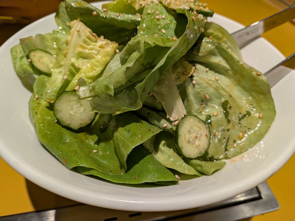 以前、通りかかった時から気になっていたお店です。川崎タンタン麺はまだ未経験でしたので、楽しみに初来店。まずはチョレギサラダと焼肉を注文。コチラのチョレギサラダはサンチュをカットせず大きいままの提供、少し甘みのあるゴマドレッシングが和えてありおいしいサラダでした。肉はカルビ、ロース、タン塩などを注文。他には餃子やナムルなどおいしいのでどんどん注文しすぎてしまいました。タンタン麺は小さいサイズで小辛にしましたが、もっと大きいサイズにすればよかったです。かき氷はセルフサービス品ですが、練乳をかける場合は貯金箱に50円を入れる事をお忘れなく。また近いうちに息子を連れてお邪魔します。ごちそうさまでした。 (訪問:2026/01/24)