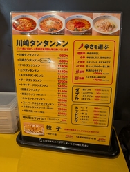 | ◇ディナーメニュー 川崎タンタンメンとセット各種 ※カルビ焼肉セット・ロース焼肉セット・餃子セットなど ※川崎タンタンは、トマト味や味噌味も選べます。 |