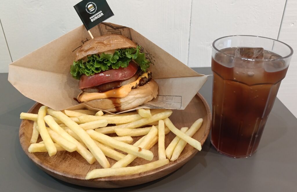 コストコに行く途中でランチにお邪魔しました。私たちは店内でいただきましたが、テイクアウトのお客さんがひっきりなし!人気ですね。アボカドとチーズの入ったバーガーと、オニオンリングのセットをオーダー。店内にはセルフのレモン水や、ケチャップ、マスタード、フォーク、ナイフなどが置いてありました。バーガーはとにかくボリューミーで美味しい!何より美味しいのがオニオンリングのフライ。カリカリと言うより、ガリガリの食感で食べ応えがあります。また、店員さん達が(皆オシャレでイマドキ笑)すごく丁寧かつフレンドリーでとても雰囲気の良いお店です。ちょっと若者向けで入り辛いかなーと思ってましたが、老若男女来店してました。ご馳走さまでしたー (訪問:2025/07/27)