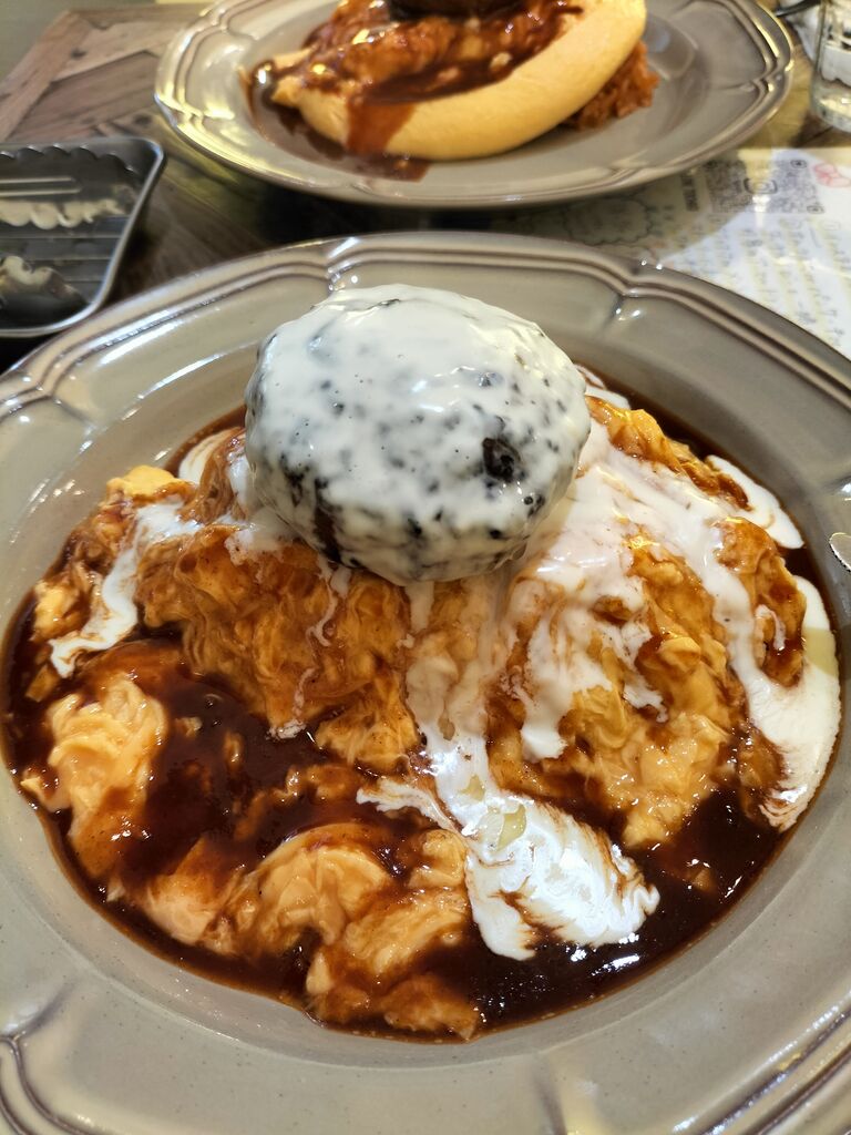 初めて来店。注文方法は、今どきのQRコードで読み込むタイプでした。店員さんが、丁寧に商品説明をしてくれるので、アナログな私でも大丈夫でした。一番オススメだという、ハンバーグオムライスを食べました。デミグラスソースと、チーズを目の前で、仕上げてくれます。若い方が召し上がっていた、スフレパンケーキも次回は食べたいなと思いました。 (訪問:2025/12/18)