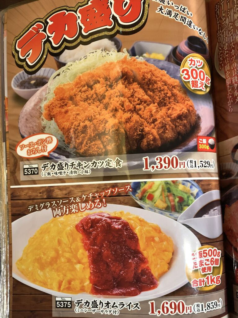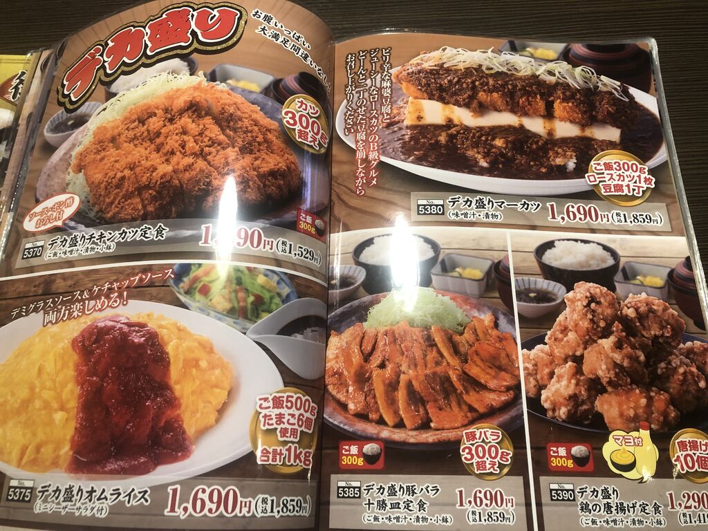 お昼にデカ盛りオムライスと、デカ盛り豚バラ定食を注文しました。どちらもボリュームがあり、食べごたえがありました。デカ盛りメニューはいくつかあり、がっつり食べたい時にオススメです。期間限定の季節メニューも美味しそうでした。 (訪問:2025/12/05)