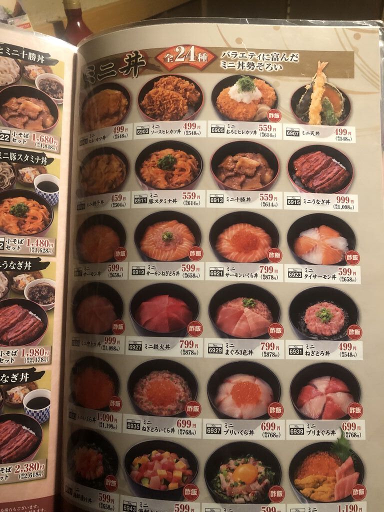 ミニ丼2種と小麺・小鉢が付いたバラエティー豊かなセット 組み合わせはなんと58種! |