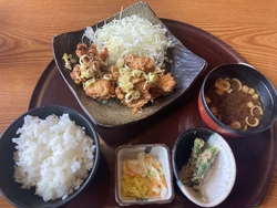 お値段手頃で美味しかった油淋鶏定食。食べ盛りの子どもはミニ丼2つにうどん付き。更にデザート。お腹いっぱい!小上がり個室がたくさんあるので、ゆったりできました。 (訪問:2025/08/01)
