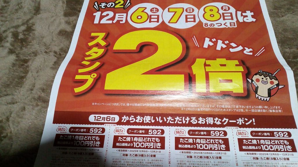 チラシにあった100円引チケットを使わせていただき、また、ポイント2倍で買い求めました。自分の家で作るのより断然美味しいし、大きさも一回り大きいから食べ応えがあります。紅しょうがが入っているのも、良い味のアクセントだと思います。ごちそうさまでした。 (訪問:2025/12/08)