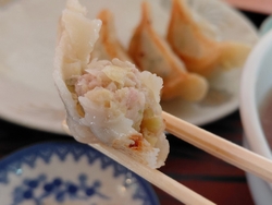 なにはなくとも餃子・海老餃子がお勧め。手延ばし熟成皮ならではの皮の美味しさと産直ニラが入ったジューシーな具が絶品。感動的な美味しさ請合いだ。マスコミ・口コミ・書きコミの3コミ効果で週末には県内外から来店客を迎える宇都宮餃子の隠れた名店だ。