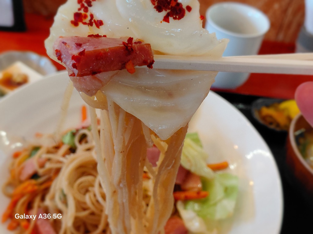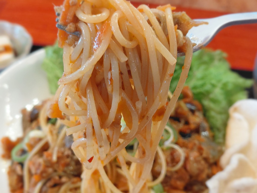本日の日替わりランチ☀️麻婆茄子パスタ500円(^-^)/お昼をいただきました(^○^)本日の日替わりランチ☀️麻婆茄子パスタd=(^o^)=b麻婆茄子が沢山で、パスタも沢山で、腹パンパン、コ・ス・パ最高の日替わりランチ☀️うまかっぺよ( ^-^)ノ∠※。.:*:・'°☆ (訪問:2025/12/12)