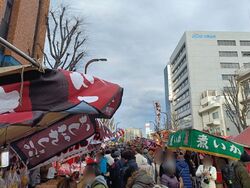 今年は初市が日曜日なので子供を誘って行きました。だるまや熊手より食べ物の屋台がたくさん、そして最近の出店はキレイで普段見ない食べ物も売ってました。端から端まで一往復したあと食べたいものを購入。はしまき、肉巻きおにぎり、大判焼きなど食べました。にぎりてんの出店は初めて見ましたが揚げたてで美味しかったです。 (訪問:2026/01/11)