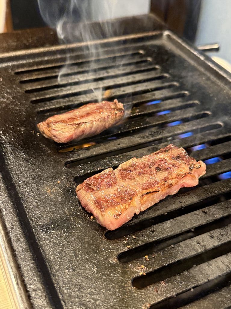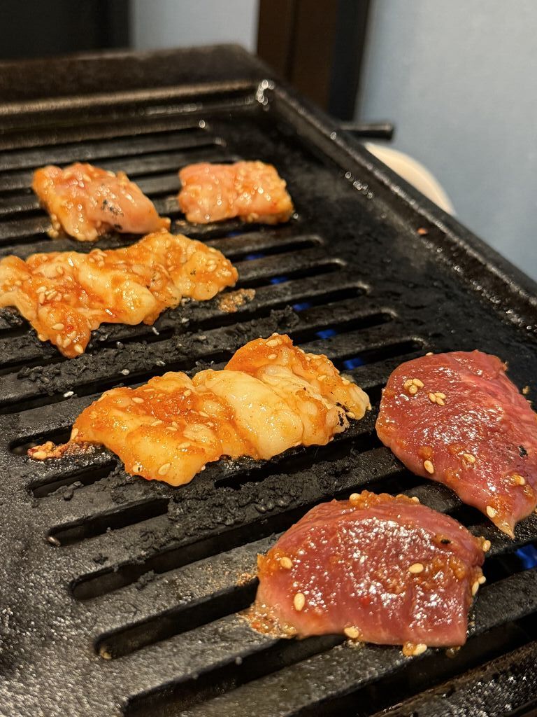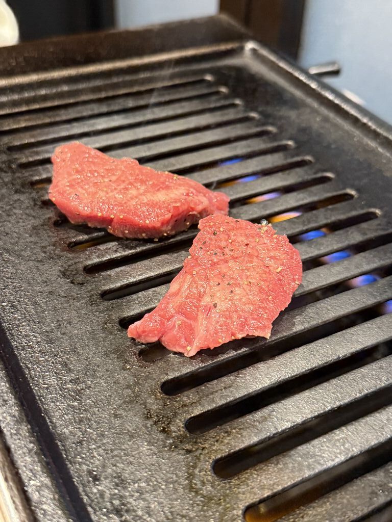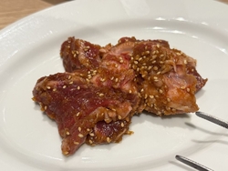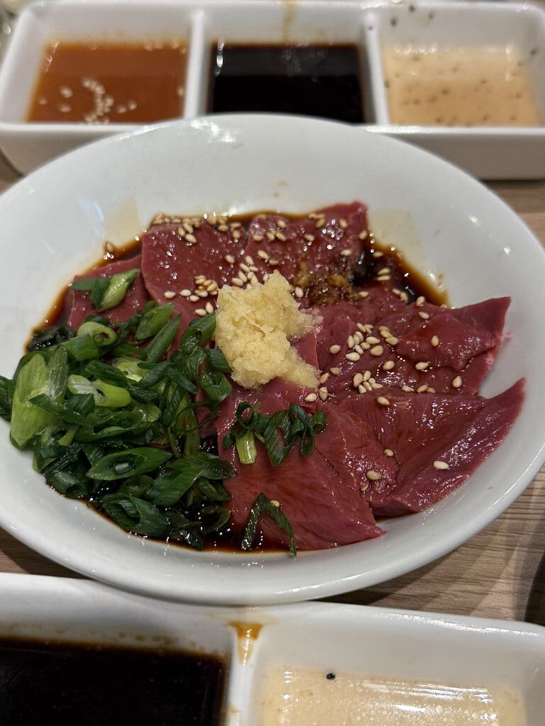 2024年11月21日オープンの焼肉屋さんに初訪問。関西の焼肉百名店のお店です。注文は200gもあるので食べきれるか不安でしたがハーフにしてくれました。「上タンハーフ、上ハラミハーフ 2,480円」「センマイ刺し 800円」「ウーロンハイ 480円×10」分厚いのに柔らかくて上質なのがわかります。店員さんの接客も良く肉も美味しかったのでお酒が進んでしまいました。 (訪問:2024/11/22)
