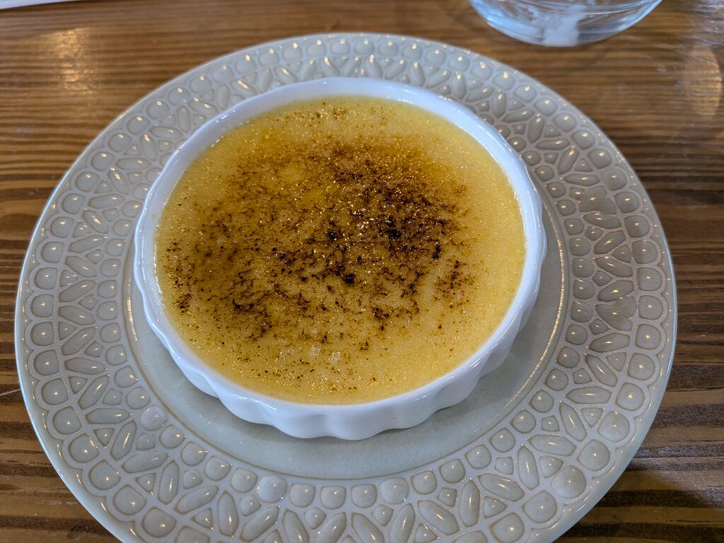 バターチキンカレーとクレームブリュレをいただきました。真冬の寒さの今日ですが、お店の中はほぼ満席でした。たくさんの観葉植物達にも見守られながらいただくランチ。辛さが抑えられた私好みの味。奥深いコクはしっかりあって極旨のカレーです。ブリュレもまじおいしい。ぱりっとした感触と音も良い感じ。口に運ぶととろとろの食感とふんわりとした甘みが楽しめます。寒い中凍えながらのお伺いでしたが、体がぽかぽかになりました。 (訪問:2025/12/14)