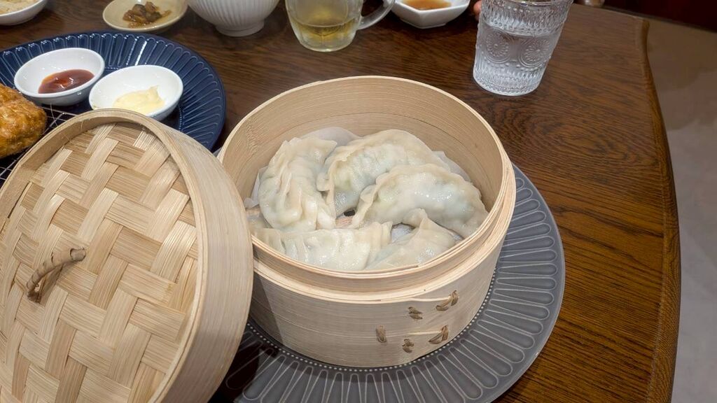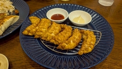 「梅しそ蒸し餃子」「ニンニク焼餃子」「肉焼餃子」「生姜焼餃子」「揚げ餃子」「ご飯セット」を注文。焼きたて、蒸したての餃子がアツアツで最高に美味しかったです。ジャンボサイズですが、餡が柔らかく野菜多めなので全然重くない。夢中でペロリといただきました。餃子の餡の味付けも濃すぎずちょうど良い。お水もレモン入りでさっぱり。店内はおしゃれ、綺麗で気持ちが良いです。女性1人でも入りやすいお店だと思います。 (訪問:2025/12/05)
