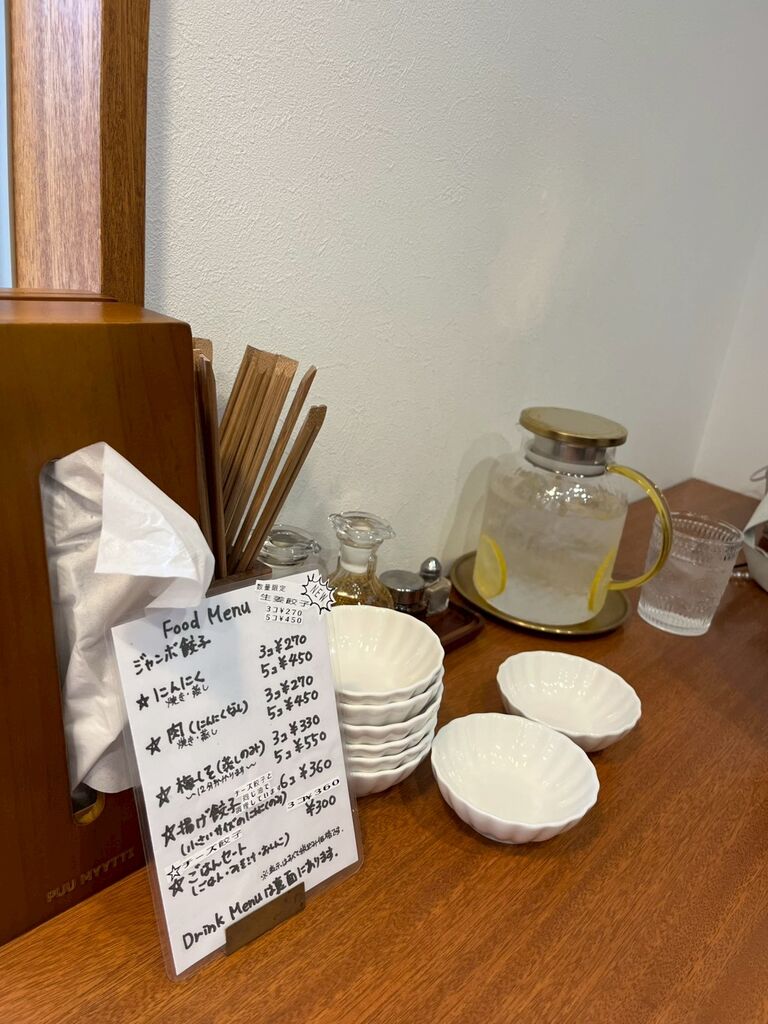 お昼に伺い【梅しそ餃子(蒸しのみ)5個】と【ごはんセット】をいただきました。せいろの蓋をあけると紫蘇の香りがフワーッと香ってきました♪食べ応えあるサイズですが梅の酸味でサッパリ感あって、ご飯も小鉢も味噌汁も美味しかったです!店内は明るくて駐車場は停めやすく、また伺いたいお店です。 (訪問:2025/03/26)